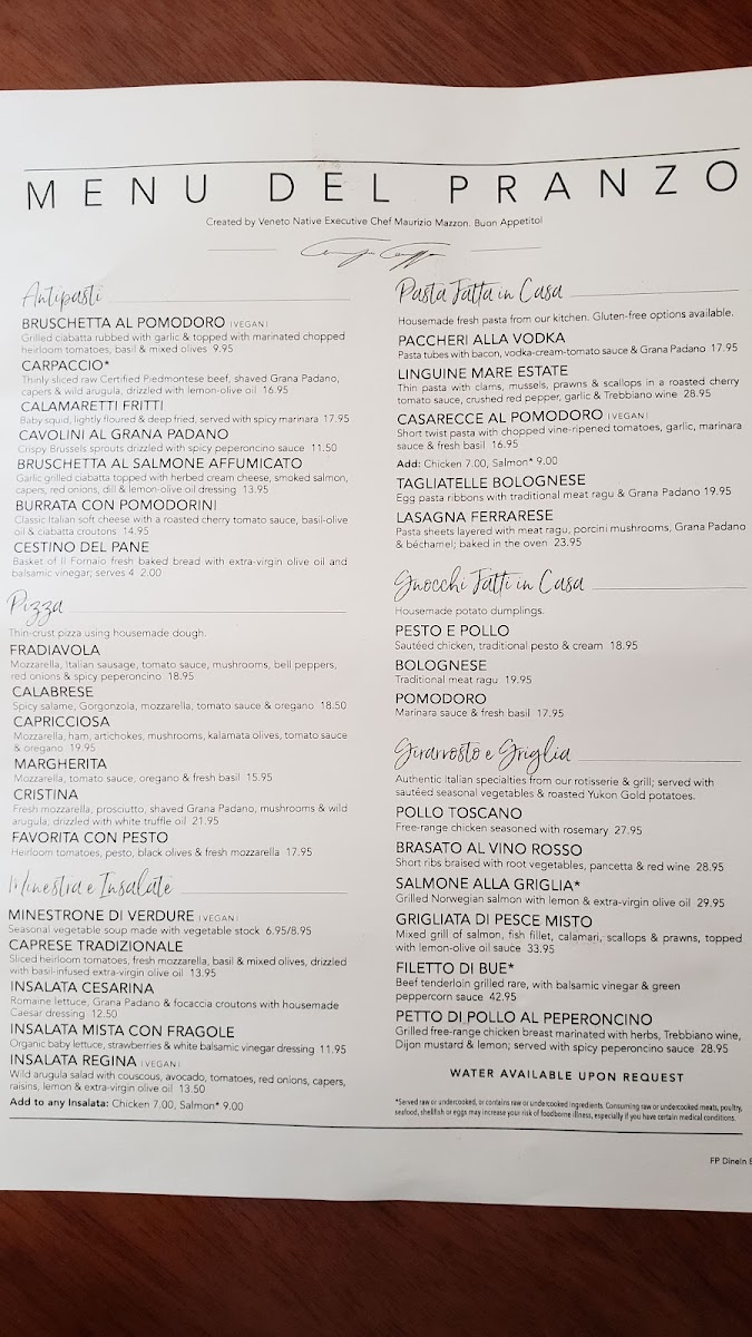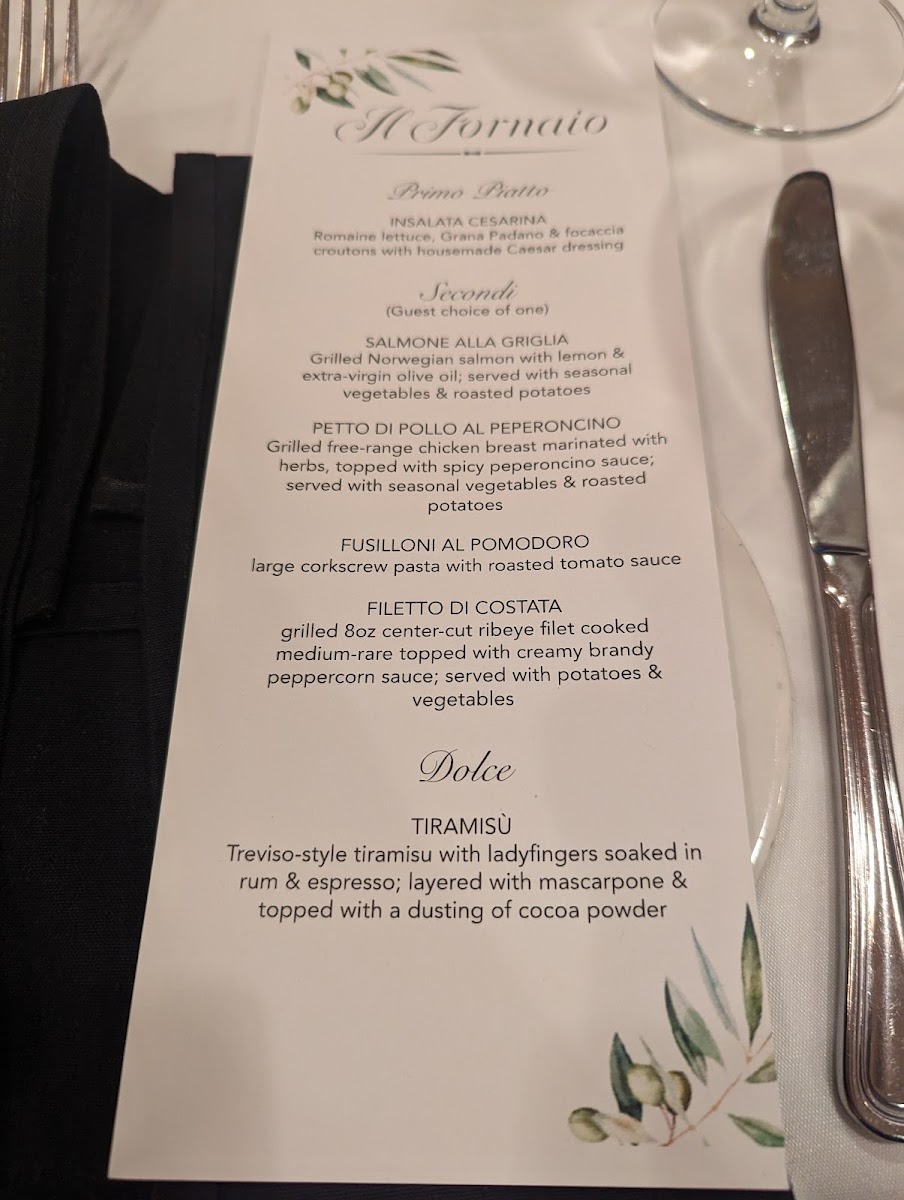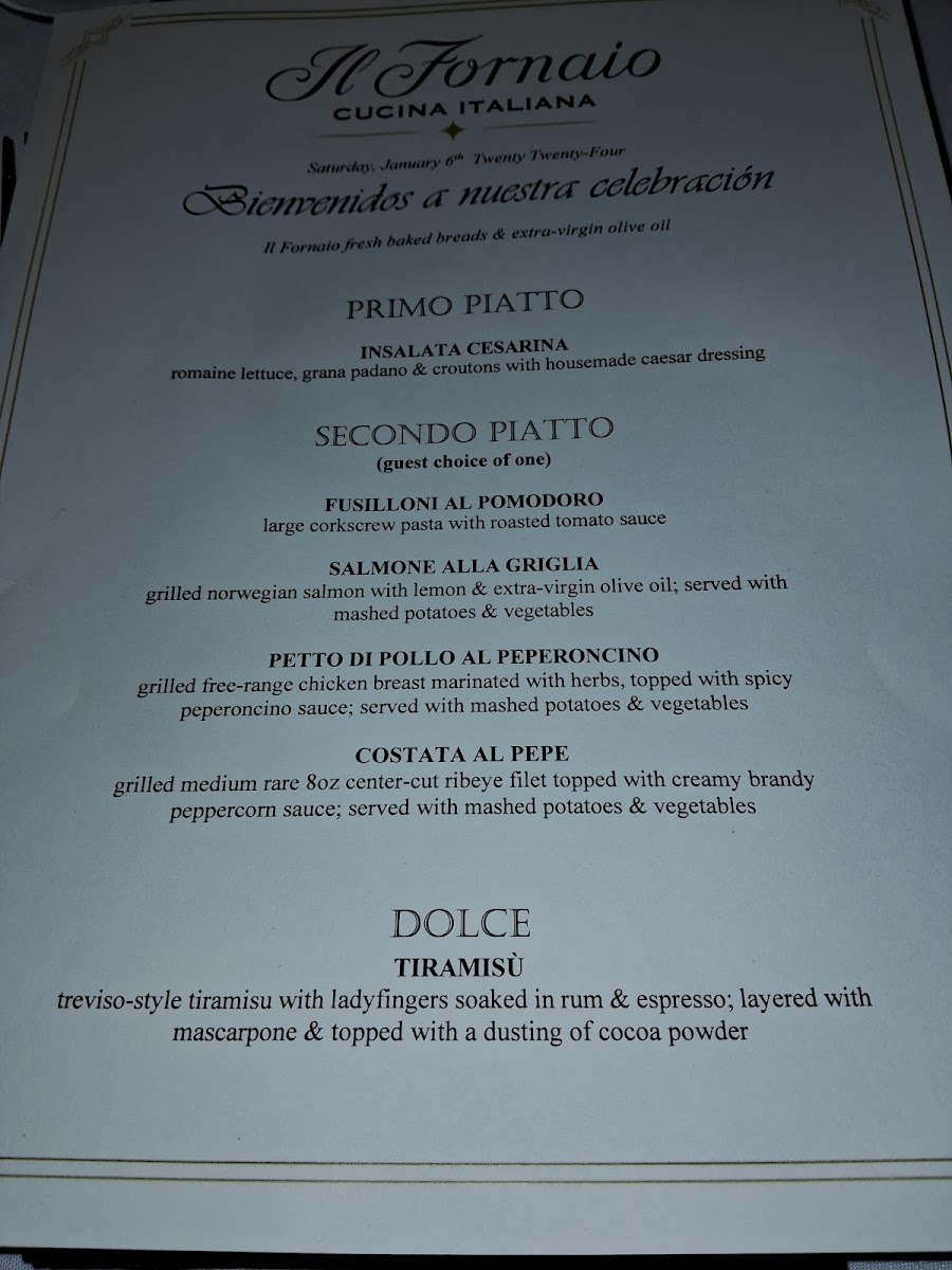 Features Salmone alla Griglia* & includes Insalata Cesarina, Rigatoni alla Vodka, Roasted Potatoes, Seasonal Vegetables, Freshly Baked Bread & Tiramisu *Please note, this item is not available on 11/27/24 or 11/28/24.